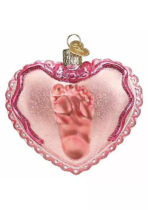 This Old World Christmas Glass Blown Baby Girl’s Footprint Heart Ornament is a great gift for celebrating love and life, or for you to decorate your own tree with!