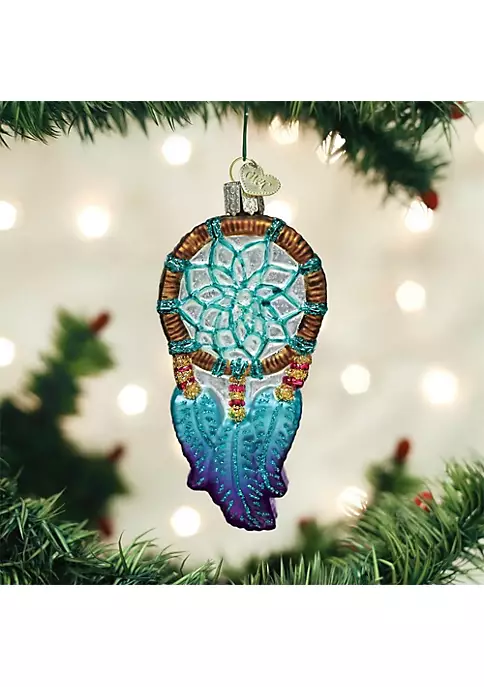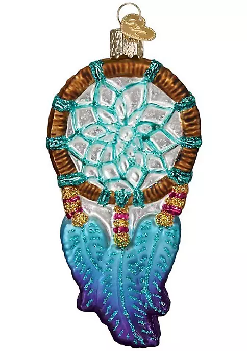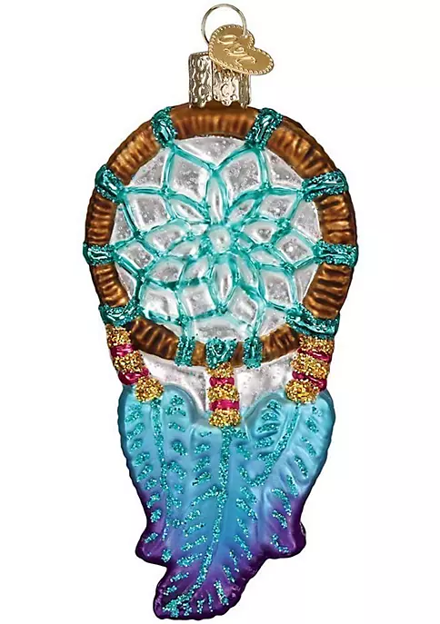 This Old World Ornament that is hand blown and hand painted is a great decoration to celebrate your love for beautiful charms. This charm was created by the Woodland group of Native Indians to catch good dreams, which would slide down the feathers to the sleeping person and let bad dreams fall through the web. This Dream Catcher has a heart bauble on its loop to depict the OWC Trademark logo, certifying that this is an Old World original. It also comes in an Old World Christmas Box that is perfect for storage or gift giving!