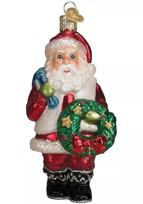 This Old World Christmas Glass Blown Santa with Wreath Ornament is a great gift for anyone, or for you to decorate your own tree with!