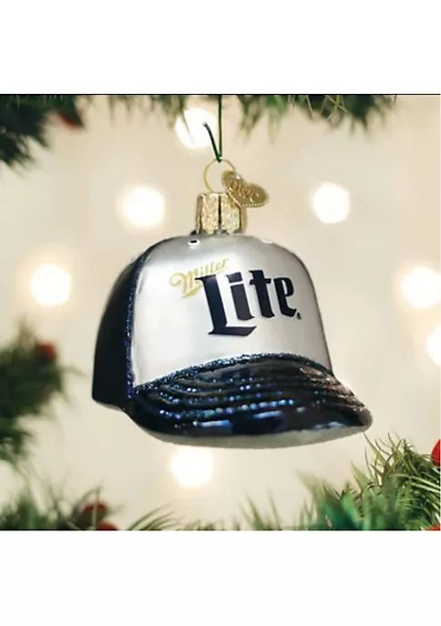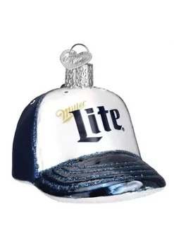 cheer to your holiday decor with Old World Christmas’ Miller Lite Baseball Cap ornament. This playful ornament shows the familiar Miller Lite insignia on a blue and