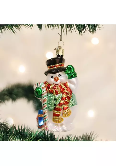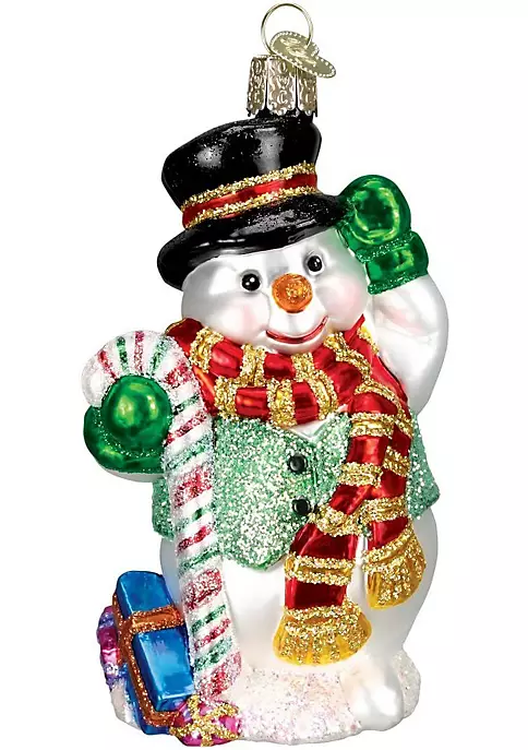 This Old World Christmas Glass Blown Candy Cane Snowman Ornament is a great gift for any winter lover in your life, or for you to decorate your own tree with!