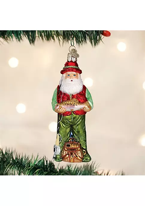 Santa works very hard and has a really big job. Every once in a while, however, he likes to take a vacation. Since the North Pole is cold and snowy most of the year, what could be better than a getaway to relax and have fun on a river with some great fly fishing? This beautiful ornament mixes a time-old hobby with the holiday spirit!