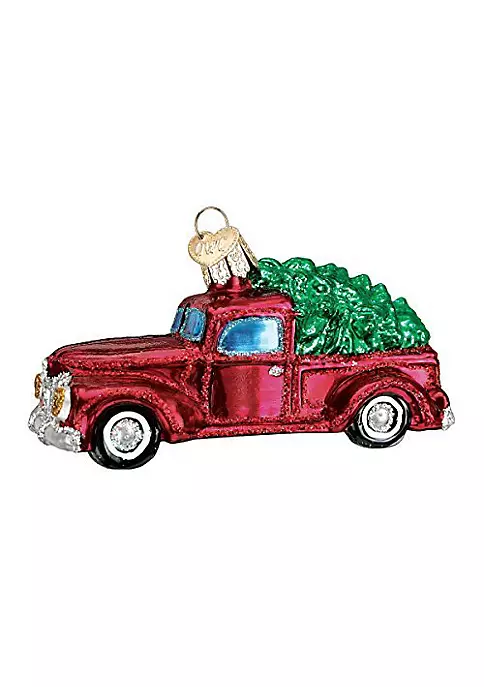 Pickup Trucks were developed as a durable and reliable replacement for hauling goods by horse and cart, and they quickly became invaluable to farmers, businesses, and the military. In this whimsical glass ornament, a trusty old pickup is used to bring home the family Christmas tree.